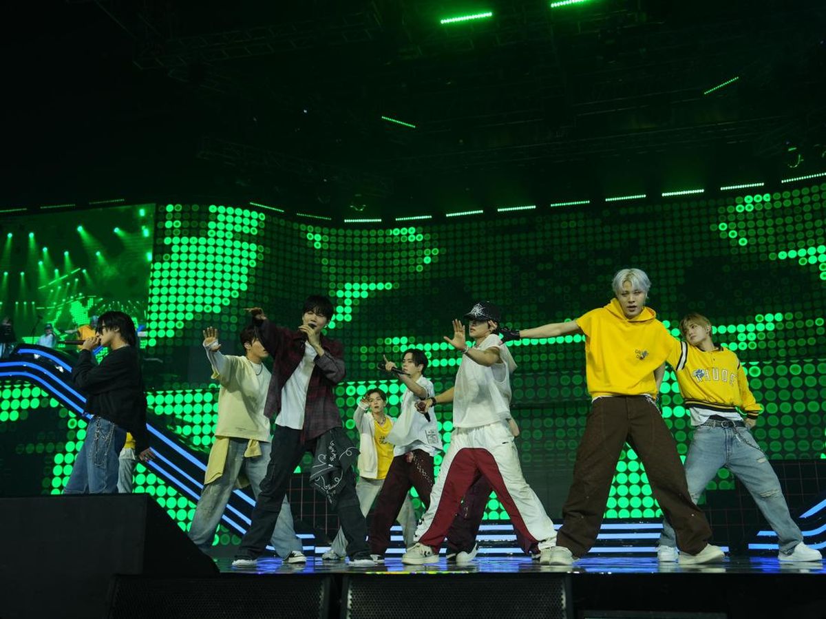 TREASURE sudah menggebrak panggung Allo Bank Festival 2025 dengan pakaian bernuansa kuning dan marun. Mereka membawakan lagu-lagu hits mereka, seperti Kong Kong dan Jikjin.
