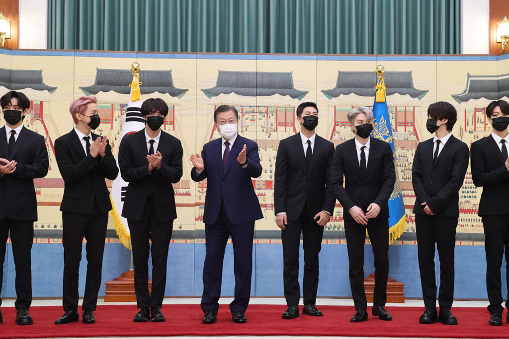 Tak lupa Moon mengucapkan selamat kepada BTS atas kesuksesan mereka baru-baru ini di Billboard dengan “Butter,” terutama untuk merebut kembali tempat No. 1 di chart Hot 100 dan baru-baru ini memenangkan tiga trofi di MTV Video Music Awards. “BTS telah sangat meningkatkan martabat nasional dengan meningkatkan status budaya K-pop dan Korea, dan saya berterima kasih dalam banyak hal.”